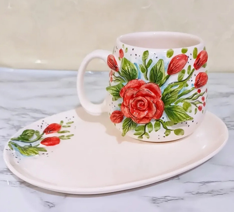 اگر به دنبال یک ماگ خاص، هنری و متفاوت هستید، این ماگ سرامیکی دستساز با طرح برجستهٔ گل رز بهترین انتخاب است.